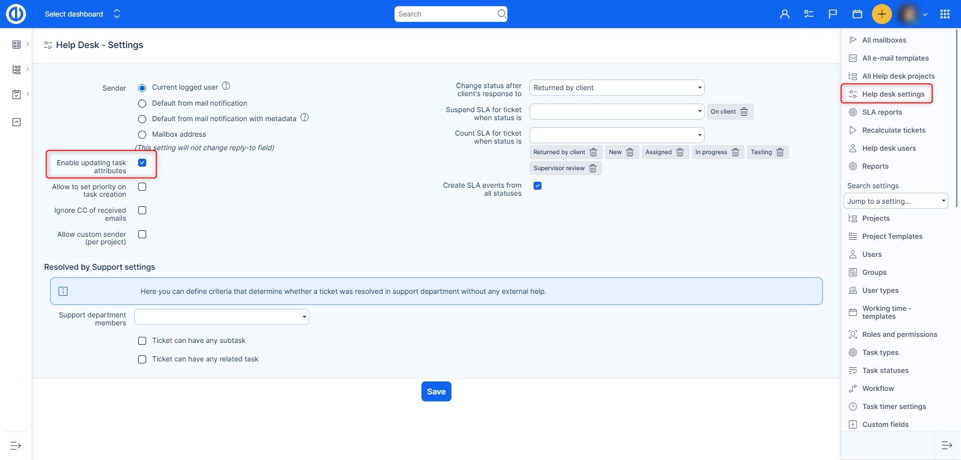 Changing task attributes via email is only possible using an email address which is registered for some user profile in Easy8 (a user must set this email address on his profile) so that the system is able to identify a particular user who sends the email and also check his roles and permissions on the projects and tasks where he is trying to perform changes via an email. Of course, if his role doesn't have the necessary permissions or some of the required changes are prohibited by Workflow, these changes will not be processed. Therefore, this feature doesn't work for messages sent from anonymous email addresses regardless of roles and permissions of an anonymous user. Please note the following option must be enabled in global Help desk settings (in Administration >> Help desk >> Help desk settings), otherwise, it would not be possible to change task attributes via an email.