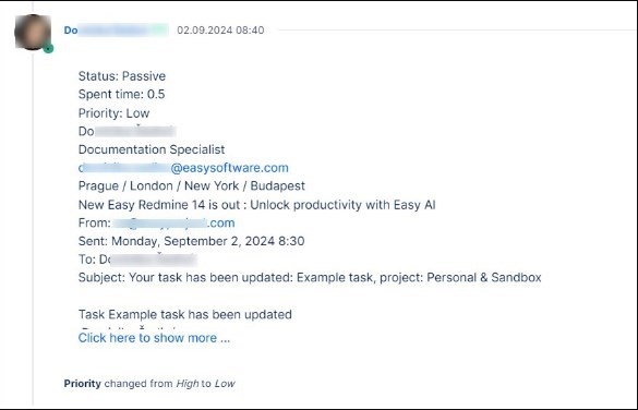 If you are in a hurry and do not have time to log in the system, you can update tickets via email. To update tasks like this, the Help desk plugin is necessary because the plugin is processing emails sent to Easy8. Therefore, we recommend teaching your user only what they are allowed to do. Make sure you use the keywords in an exact form.