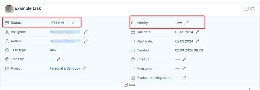 I want to change the priority, Spent time, and status.