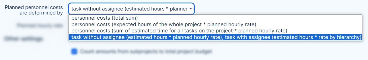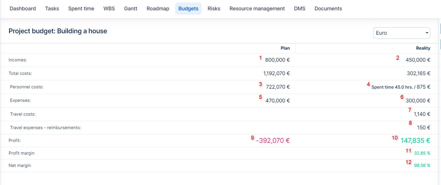 4) Real personnel costs - spent time * hourly rate. Cost rate settings are explained in detail in the related post. In project budget, this item is shown according to the budget setting