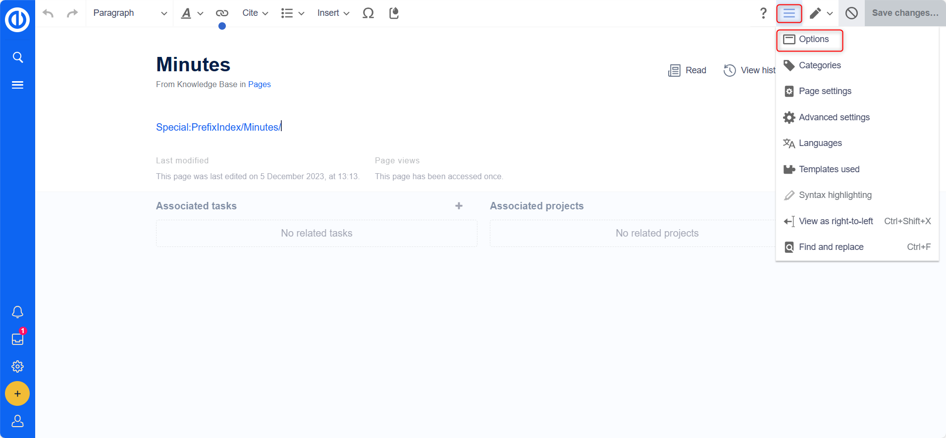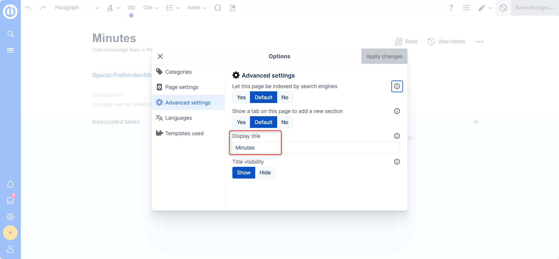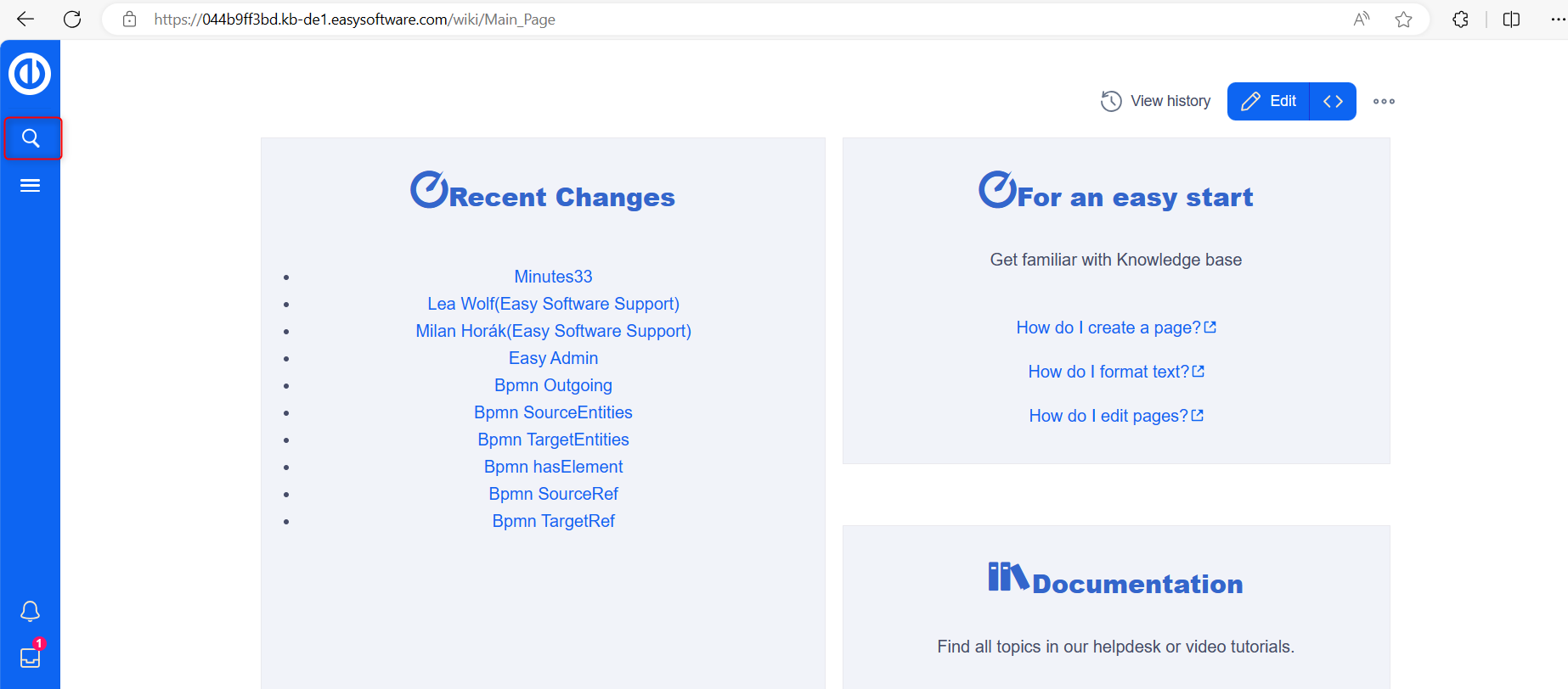 - Save the article, and it will now exist in the main namespace of the knowledge base.