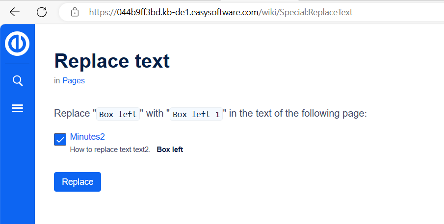If you click on "Continue," the text will not be replaced immediately. First, an overview page with the results found will be displayed. Check which results you want to replace and check the corresponding boxes. Click "Replace" to perform the replacement.