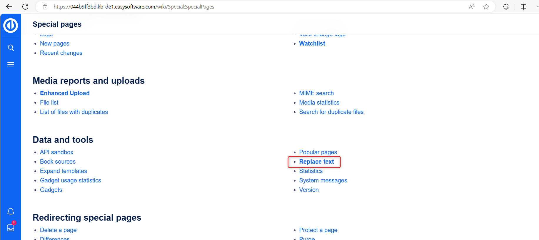 This section highlights essential special pages within the Special namespace configuration. Special pages encompass all configuration pages placed in the Special namespace.