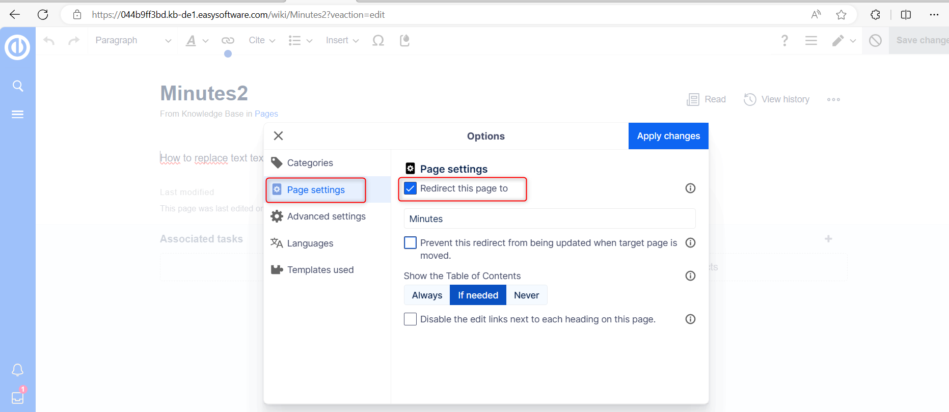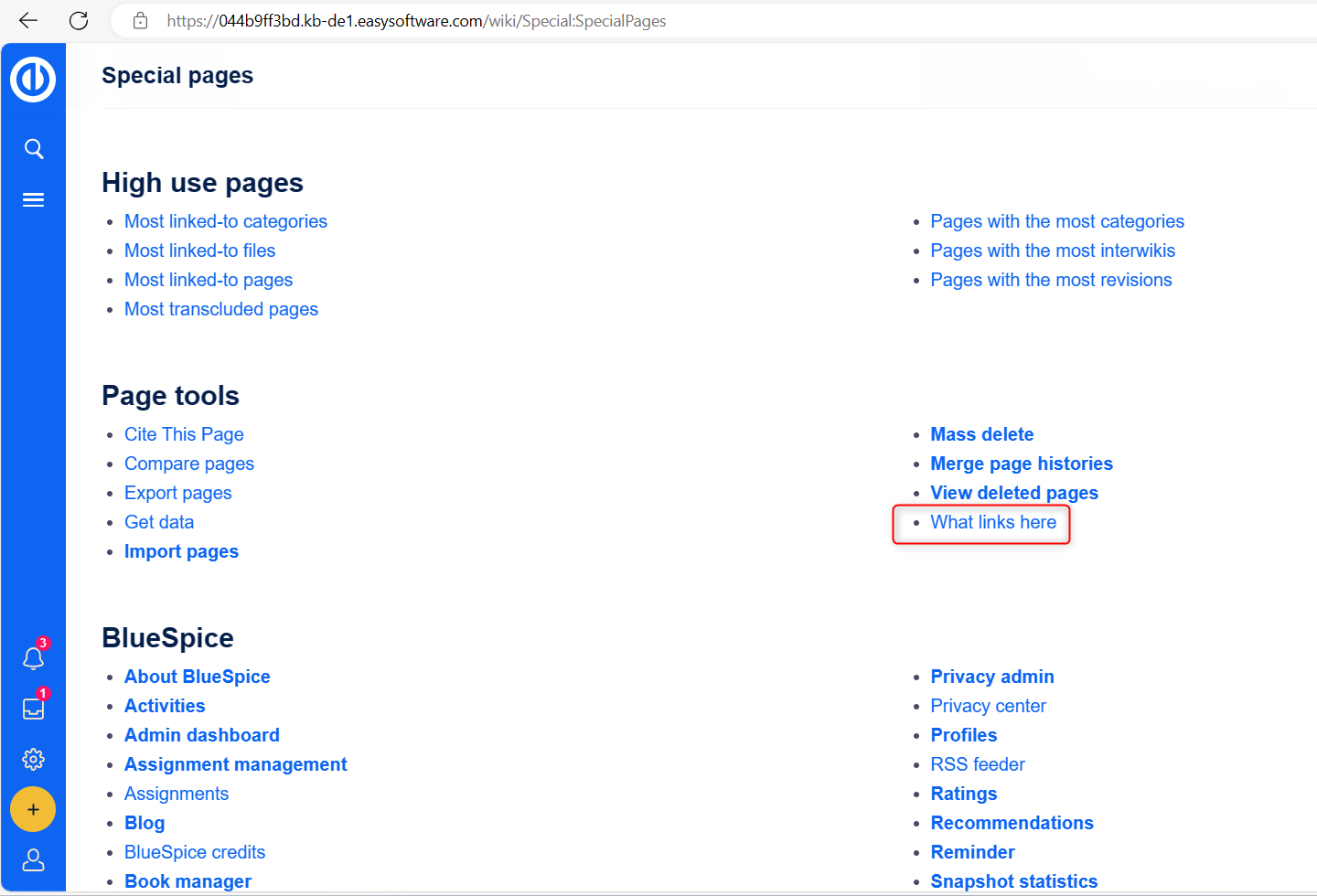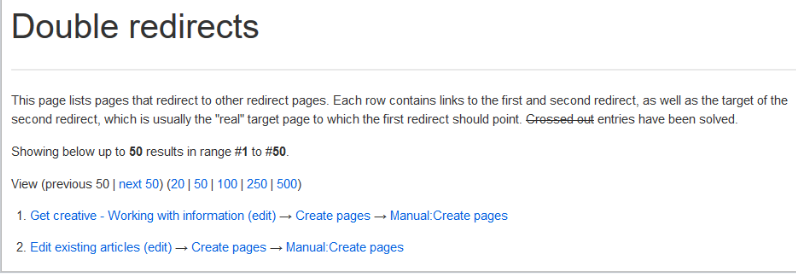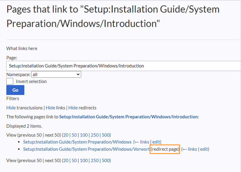 If no redirect was created when the page was renamed, it is sometimes necessary to check if existing links to the original page exist in the knowledge base. These links must then be adjusted to reflect the new page name.