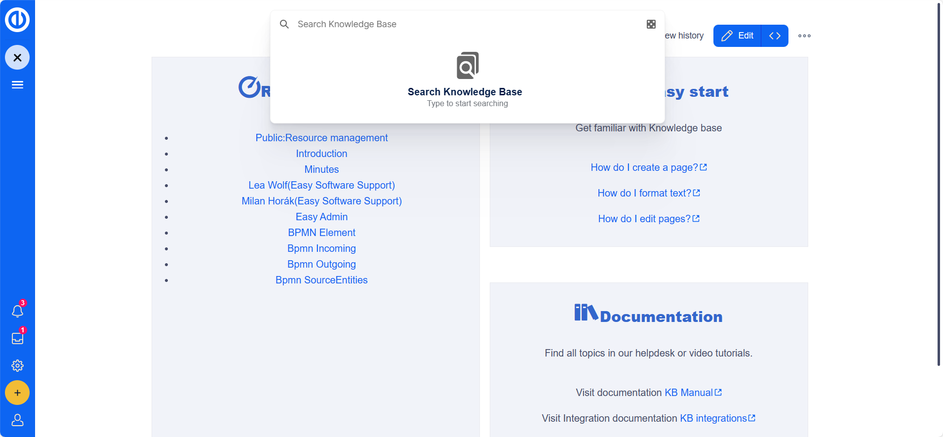 - John logs in to his Easy8 account with the necessary permissions to create new knowledge base articles.