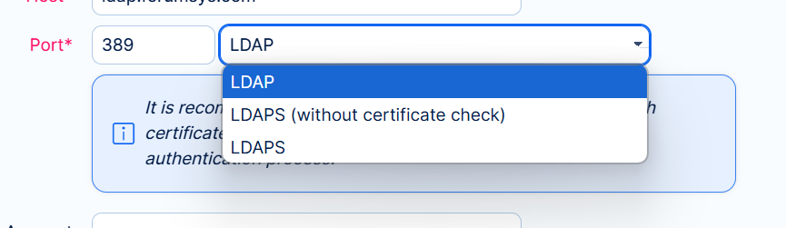 - LDAPS: Check this if you want or need to use LDAPS to access the directory.