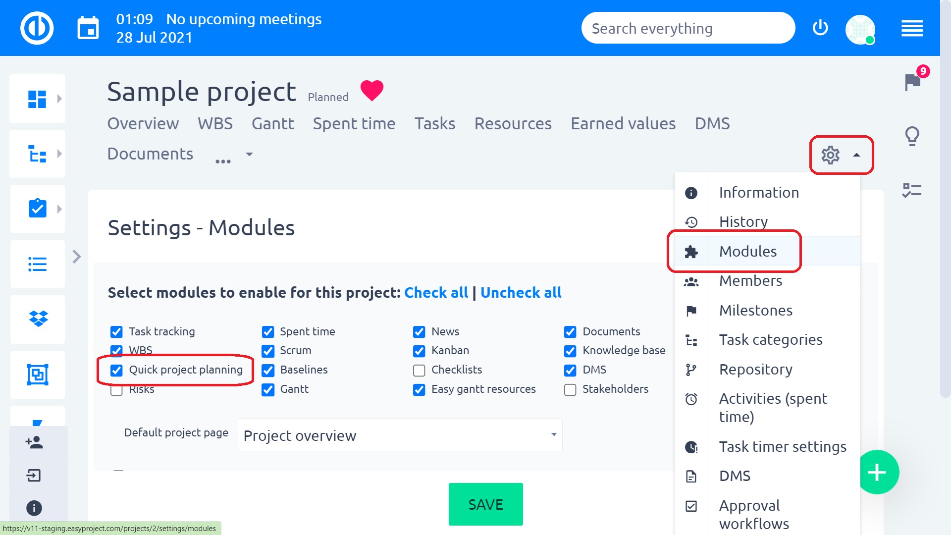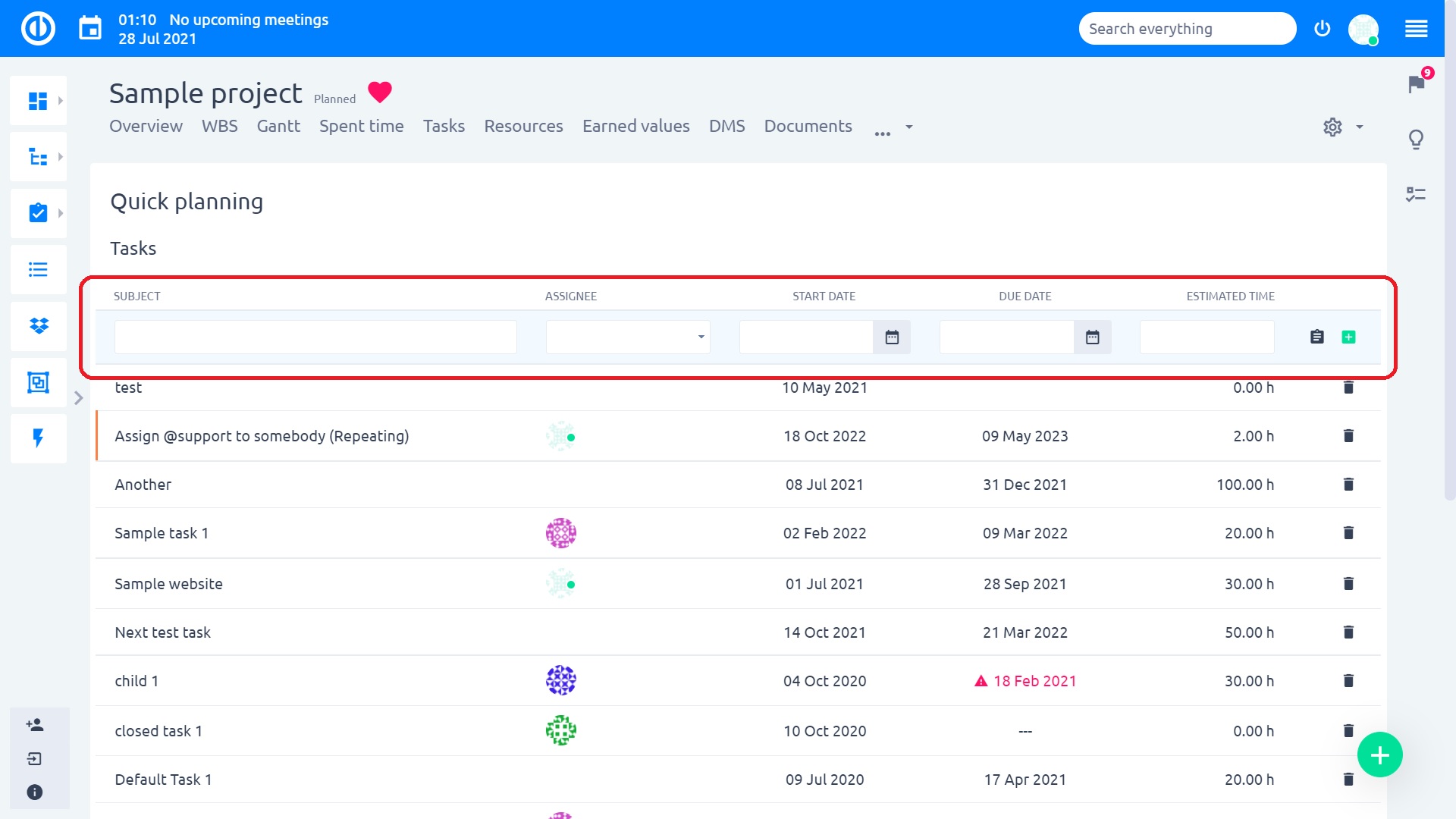 With this module, you will save a lot of time! Quick project planning is part of the basic Easy8 package, no plugin needed. It has to be activated in the project settings in the modules tab.