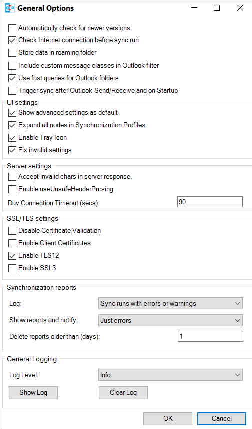 In the General Options dialog, you can change settings which are used for all synchronization profiles: