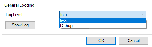 In the General Logging section, you can show or clear the log file and define the log level. Possible log levels are INFO and DEBUG.