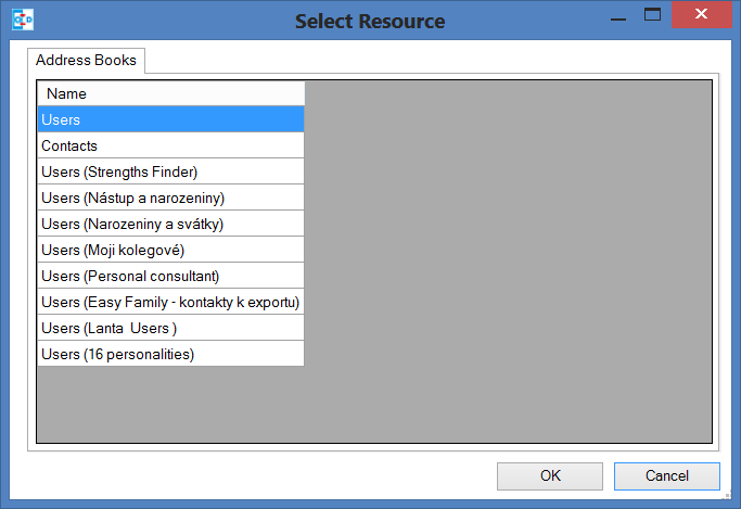 And this is an example of address books (basically contacts, users, groups of users, and related filtered lists).