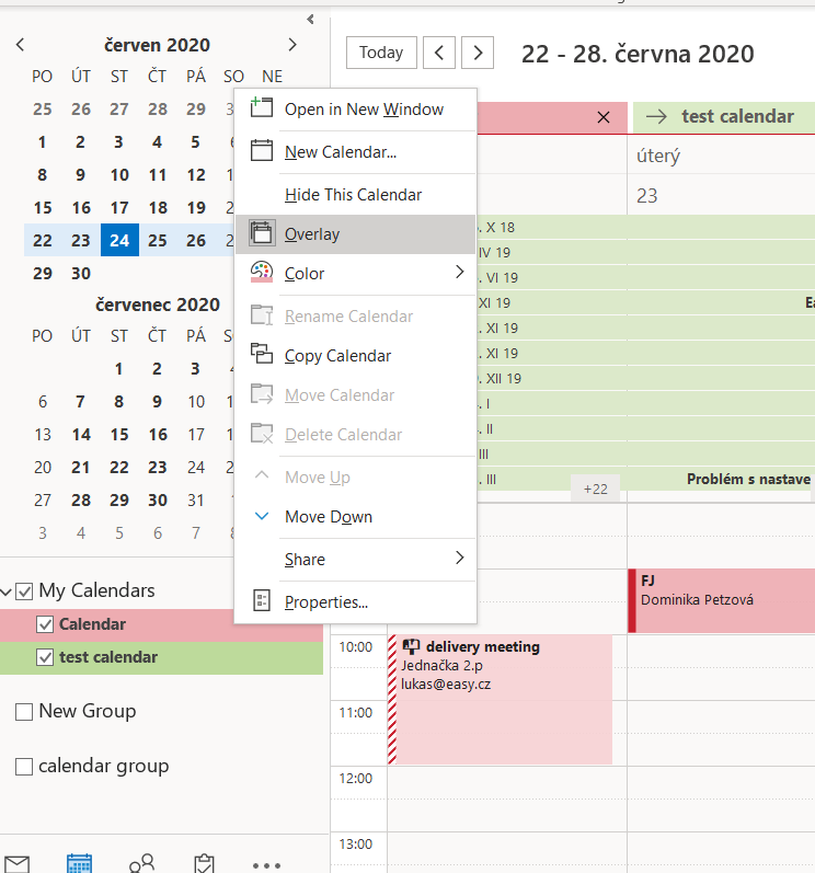 In order to make all the selected sources (folders) visible within a single calendar view, the overlay feature in Outlook must be enabled.