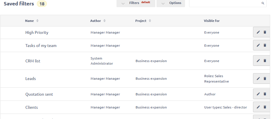 Column Visible for can now show not only specific roles, but also whether the filter is visible for the author, everyone or user types.