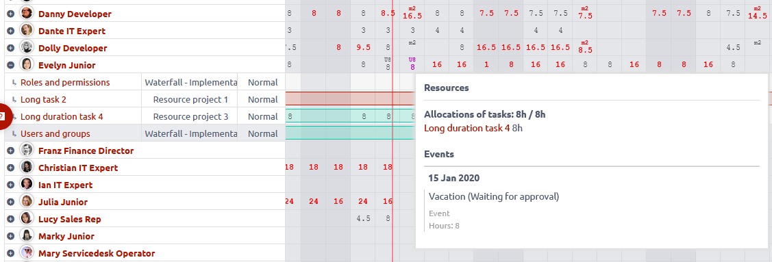 When a user requests vacation (or any other attendance that requires approval), and it is still waiting for approval, in resource management you will still be able to allocate tasks on that user and day.