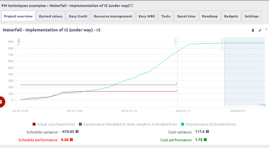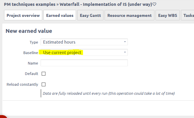 Previously it was required that to create a baseline of the project plan to show planned value chart line. You would them compare the actual EVM line with the planned value.