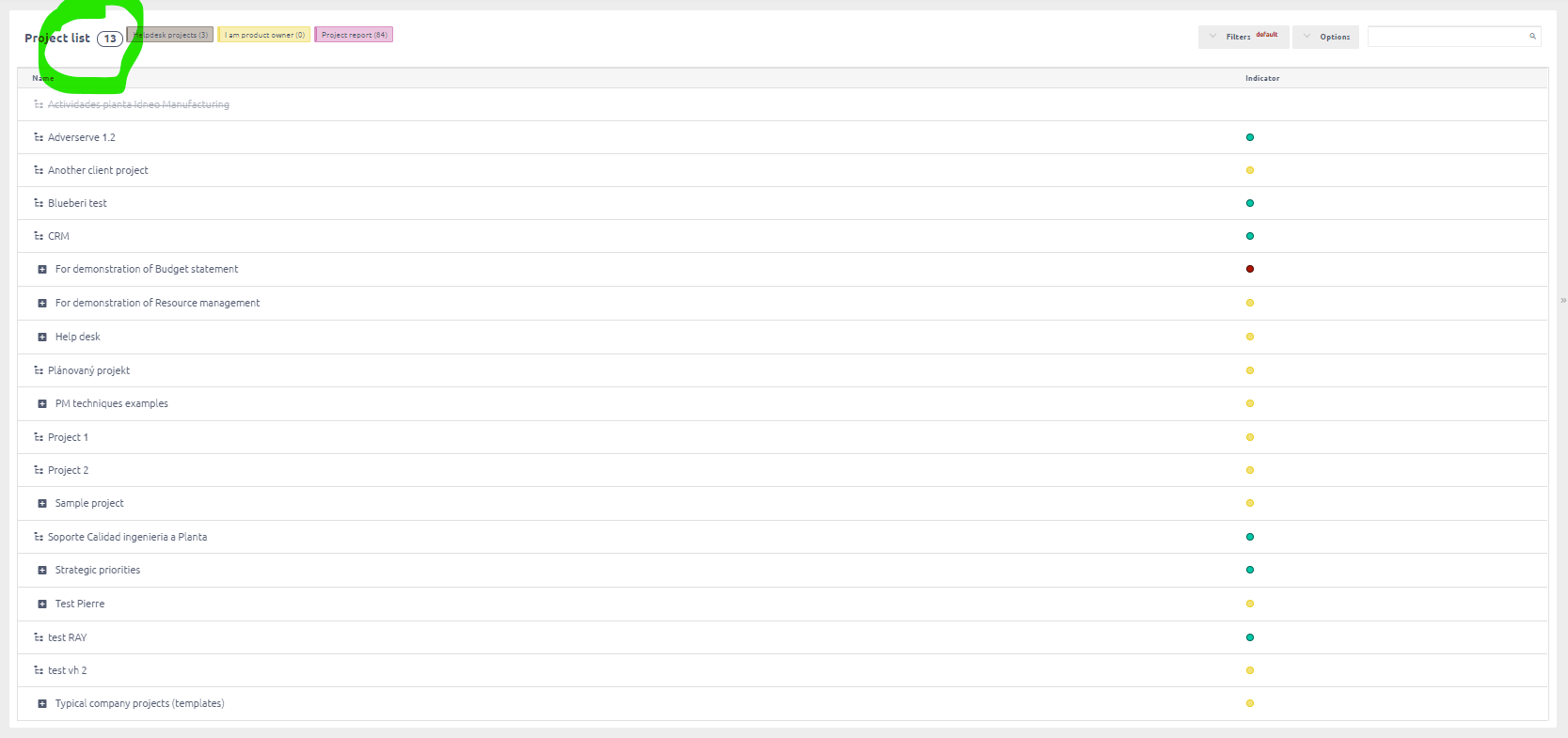 For projects linked to a contact, the total number of projects shown above the project list (with or without filter) is sometimes inconsistent with the real number of projects displayed on the list.