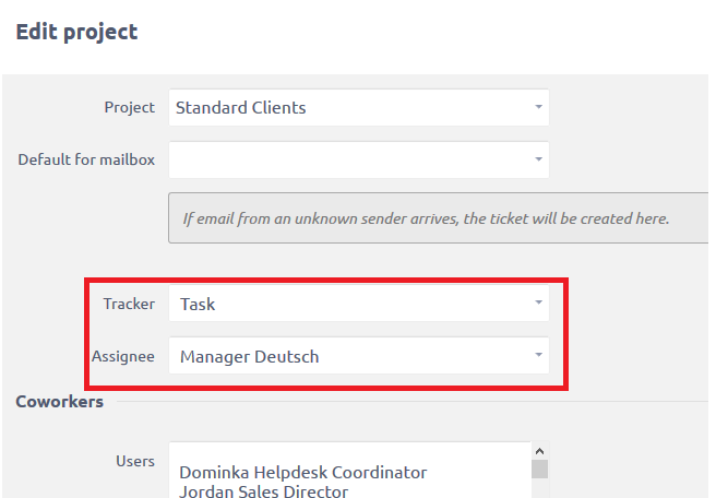 When using e-mail to control the Help desk, e-mail keywords overruled the default Helpdesk project settings (tracker, assignee).