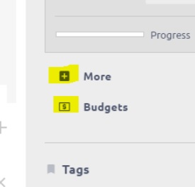 Fixed. The Budgets menu option on a task is consistent (the plus icon).