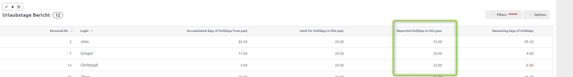 Due to a bug in Attendance Report, the "Reported holidays in this year" column may show some numbers even when no holidays are actually reported this year.