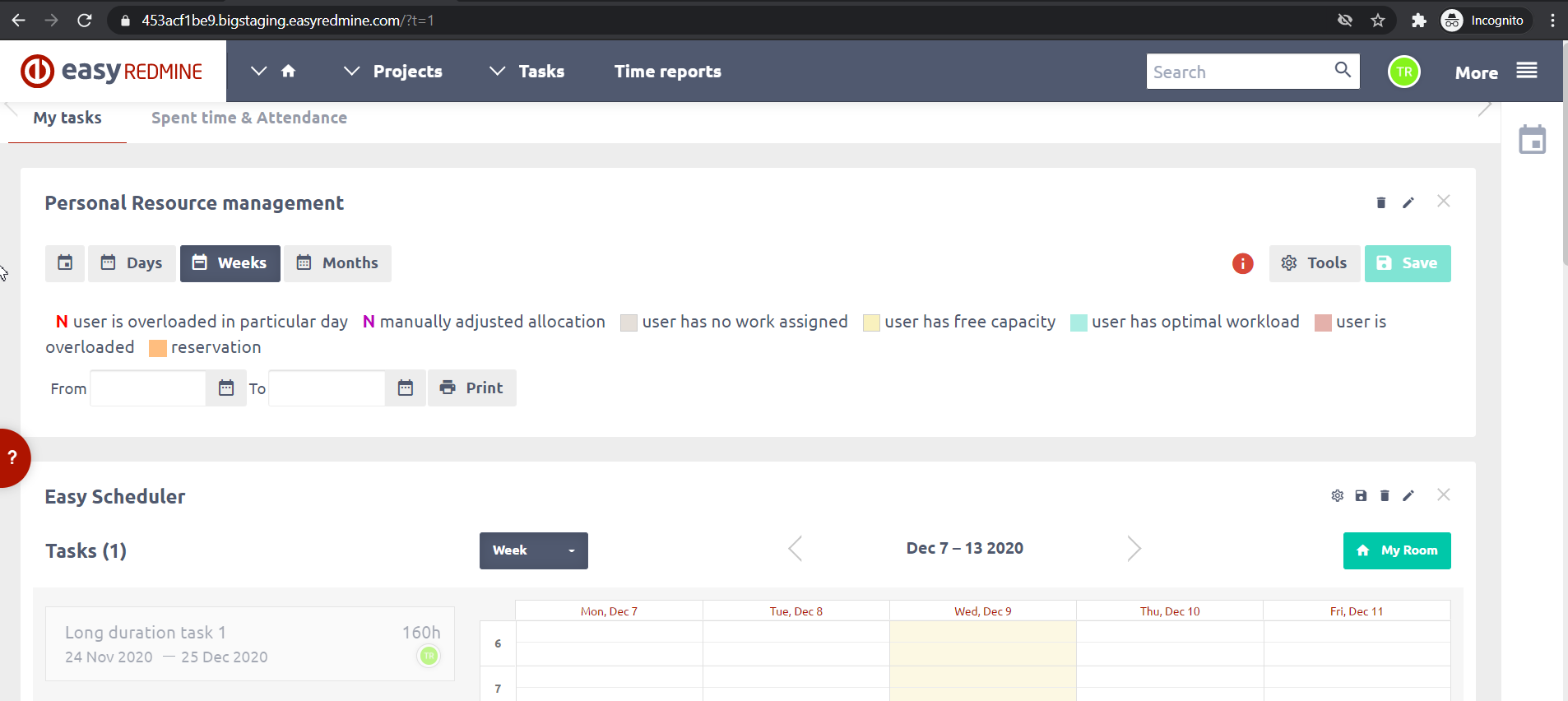 The personal Resource Management module requires an Easy Gantt permission
