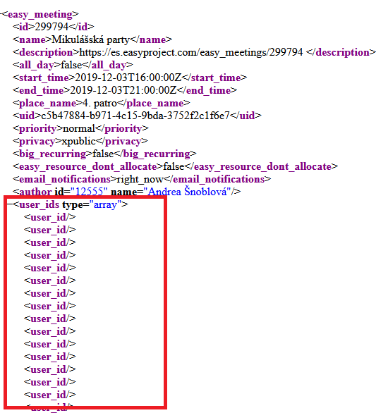 Multiple user_id arrays in the XML code representing various meeting attendants in Scheduler causes the module to crash.