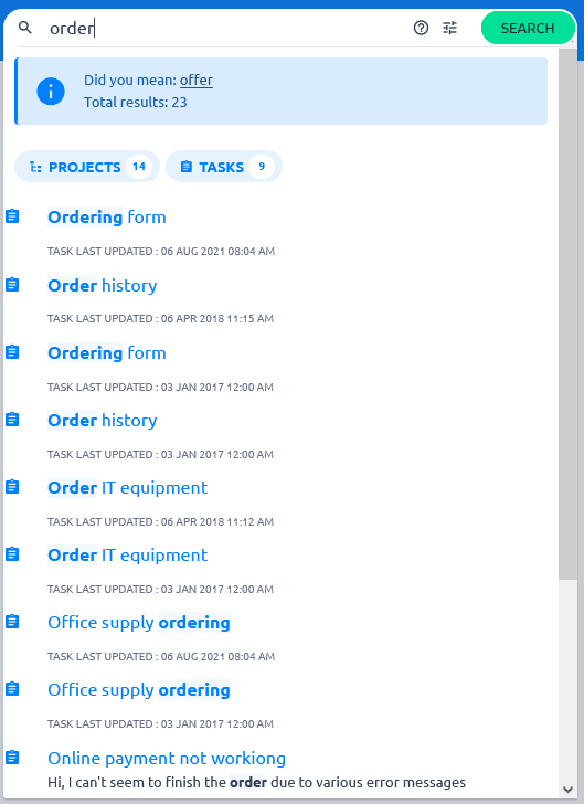 Based on long term feedback from our users it became quite clear that we need to seriously focus on upgrading the full text search. We thoroughly analyzed various search engines and ultimately chose a solution that shrinks time to results under one second, while covering all searchable entities. Needless to say, it surpasses the previous search by multiple generations.
