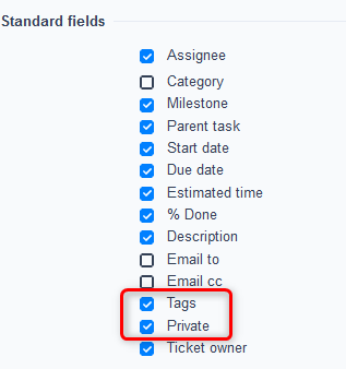 Ability to add tags on tasks will be defined per tracker. Same for the option to set tasks as private (it still has to be allowed in global settings, and user still has to have permission for private tasks).