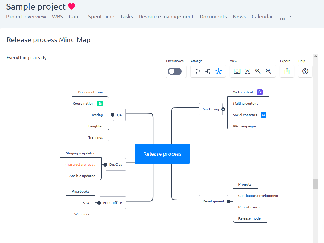 That part has now been added. The new Mind maps project module is used one step earlier, before planning tasks. Mind maps are a tool for brainstorming and subsequent organizing of your ideas and visions of the project. It is here where you can let your imagination run wild and really cover all the aspects of the project you are planning. Once you organized the ideas and all the tangible and abstract dimensions of the project, you can move on to create real tasks (for example in WBS).