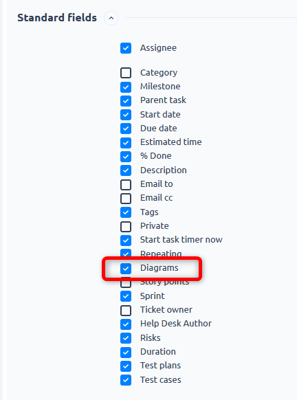 If you are updating from an older version, this field is enabled by default, so that you don't lose it. We do encourage to disable this field on any trackers where you don't use related diagrams. It will simplify these tasks for a better experience for your users.