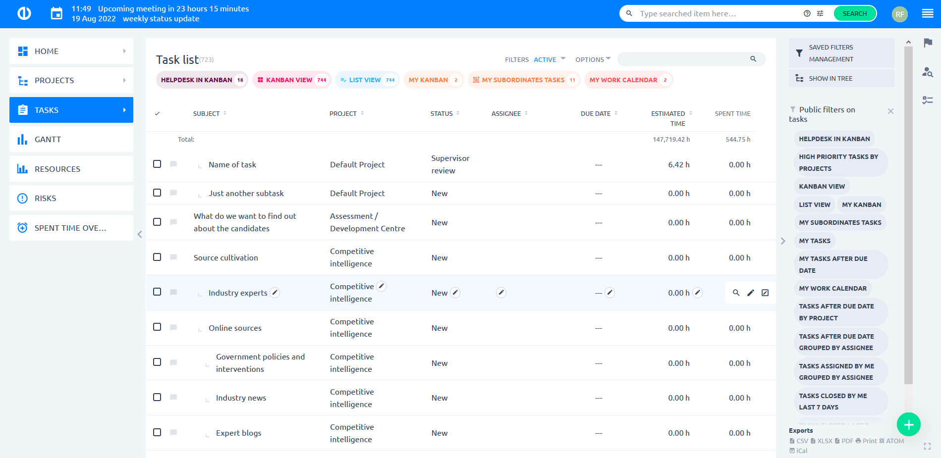 On task detail, sections for Related or Subtasks, you will see their open/closed/total numbers. This is especially useful for deliverables which consist of many subtasks. By clicking on the number, you will be redirected to a separate list of the relevant tasks.