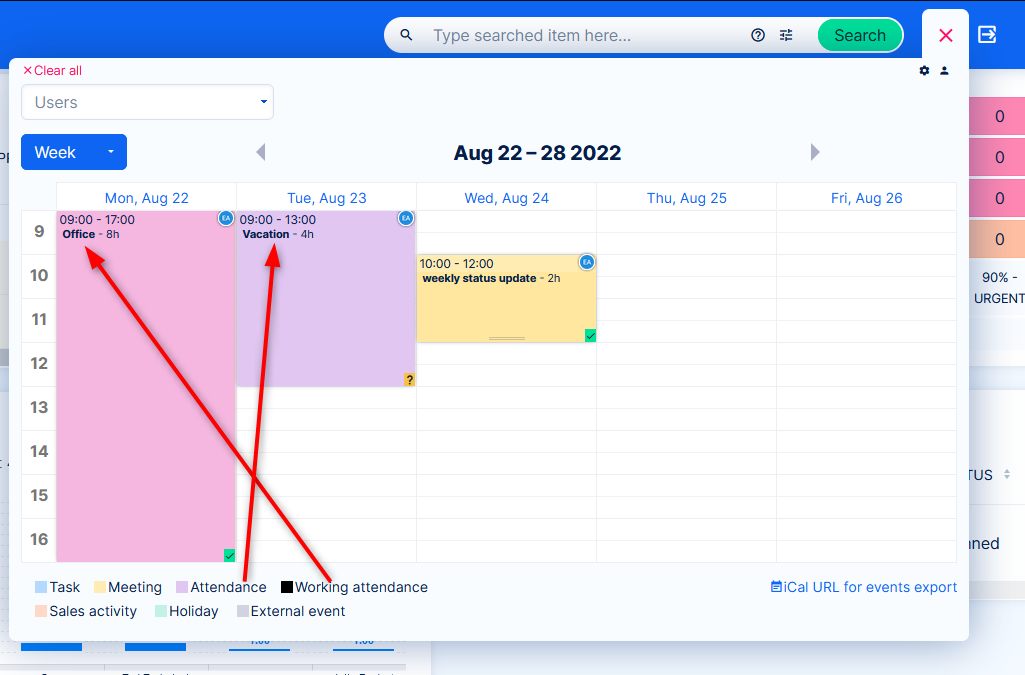 We added a new category - Working attendance - to show what was previously hidden in the calendar. In case you are using the calendar to log attendance, this category is useful for you.