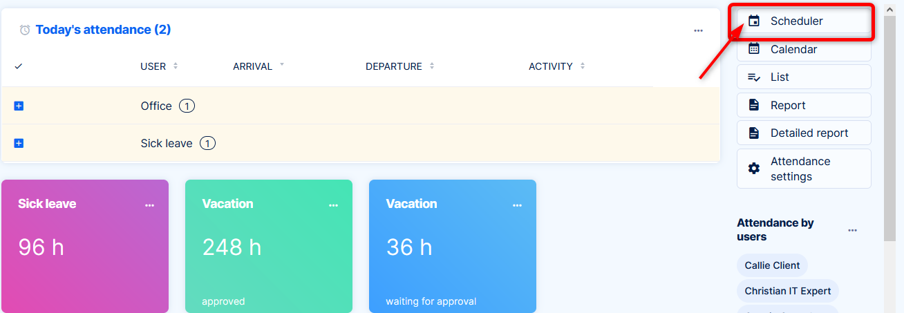 - Set filter for attendance to some longer period (e.g. -30 +90 days)