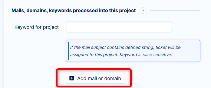 Adding project to help desk >> setting Mail or domain is prepared (but not filled), although not always needed.