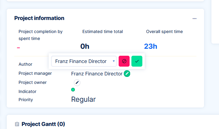 Project overview page >> module Project information - native and custom fields. Some fields were still not editable via pencil button on this module. In version 12, inline editing is available for all fields that have no technical limitation (project manager, owner, author and most custom field types).