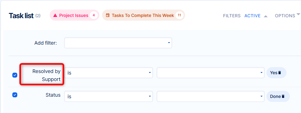 This will evaluate tickets from the last 90 days - Finally, go to task list and find the filter Resolved by Support