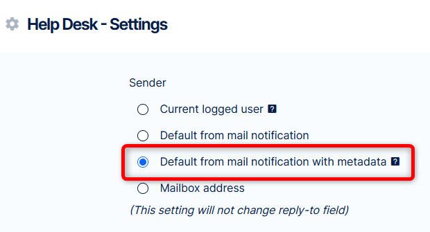 This option does not affect your incoming help desk mailbox. Reply-to, which is the help desk mailbox that processes emails to tickets and comments remain intact.