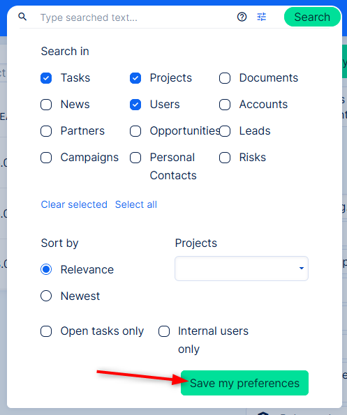 Users can now set their own default search preferences - which entities are ticked, open vs. all tasks, sorting.