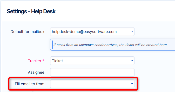 New option in help desk settings on project - Fill email to from