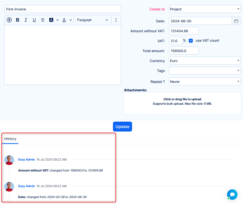 There is also an agreegate history log across the whole project as a part of Activity feed.