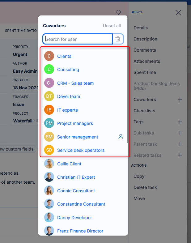 Unified behaviour in the ability to add a group as coworker in Quick task editor.
