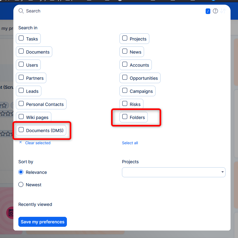 DMS documents and folders can now be searched in full-text search.