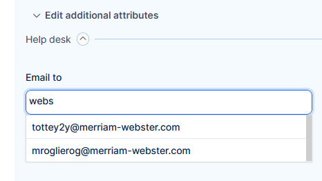 Help desk - Email to, cc select from various data sources