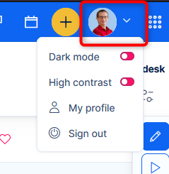 Clicking on the avatar or the arrow activates the submenu