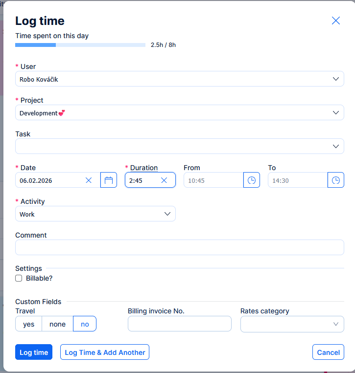 Logging time spent across the application is now through a unified predictable form. Previously there were more than 5 differently looking and behaving forms for this basic operation.