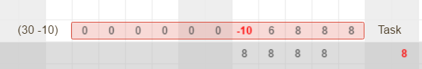 When you see two numbers in brackets before the taskbar, such as (30-10), the first number is total estimated time while the second one is time already spent on the task. Remember that any negative time value represents spent time.