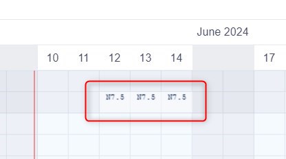 Thanks to the communication link between Resource management and Attendance management, the days when a user is not available (due to vacation, sickness or any other reason) are displayed on Resource management timeline with "N" symbol as shown in the image below. This will prevent the user from getting tasks for these particular days.