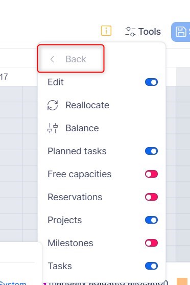 - Planned tasks toggle button: Show toggle "Planned tasks" in Resource Management. This button only works with planned tasks, not planned projects.
