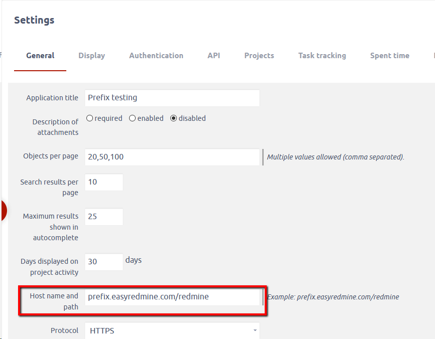 The sample configuration is for application https://prefix.easyredmine.com/redmine
