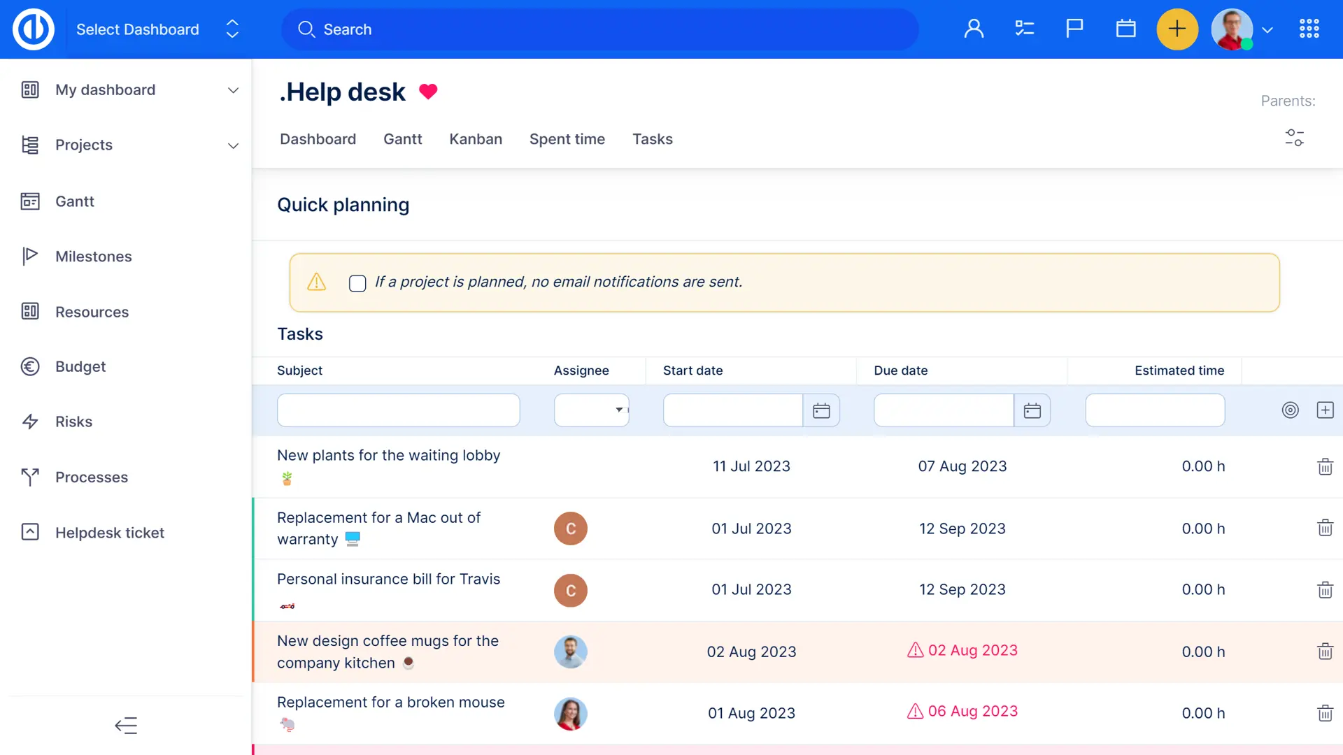 - Accesible desde un proyecto a través del botón “Planificación rápida”