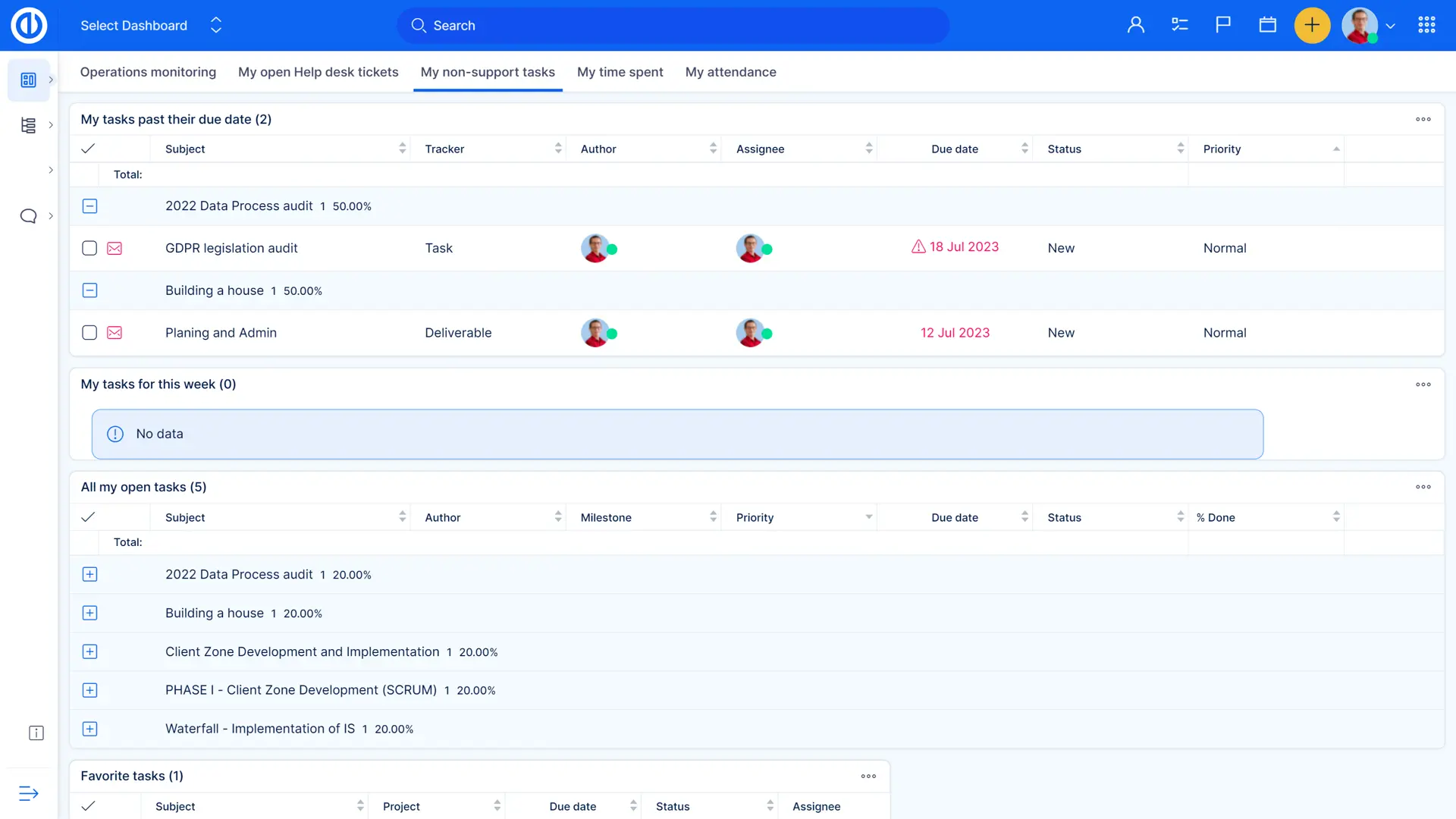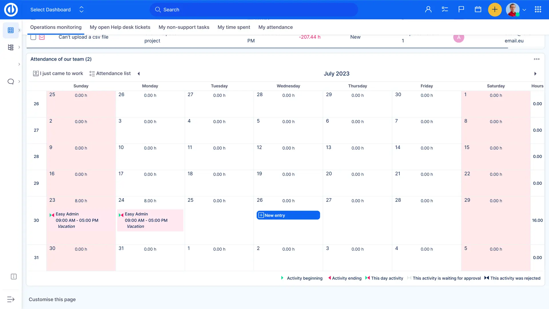 El panel de control personal predefinido, adecuado para el rol de Help Desk Director, está diseñado para proporcionar una visión general del rendimiento actual relevante para la gestión de soporte al cliente.