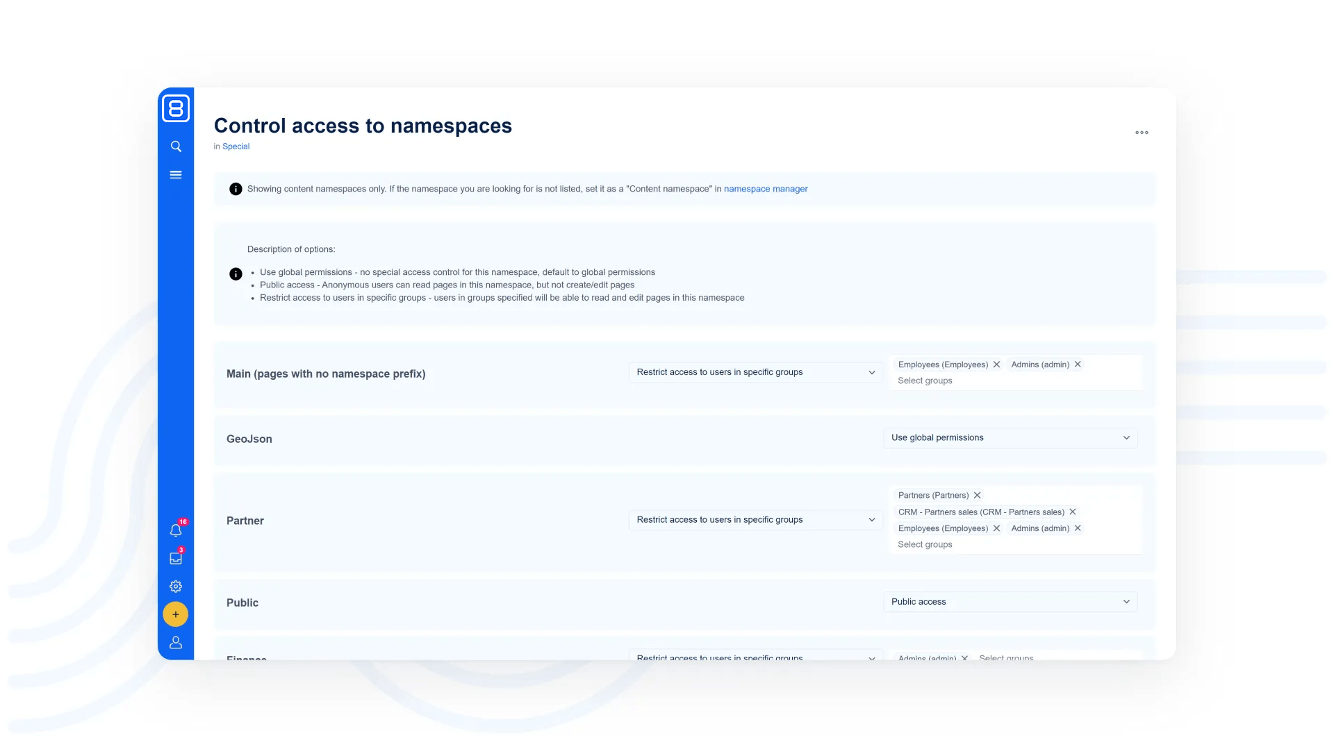 Protege los datos sensibles de tu empresa. Controla el intercambio público, la edición, el acceso de solo lectura o restringe a personas específicas.